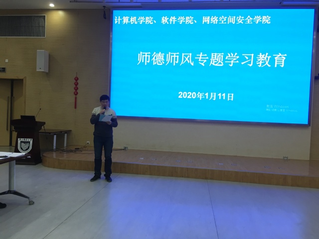 为进一步规范学院教师履职履责行为,落实立德树人根本任务,强化学院师德师风建设工作,1月11日,学院在学科楼一楼报告厅组织全体教职工开展师德师风专题学习教育,发放了《南京邮电大学教师师德师风学习手册》与《南京邮电大学研究生导师学习手册》。学院党政领导班子全体成员、全体党委委员和全体教职工参加了会议,会议由学院党委书记刘蒙主持。